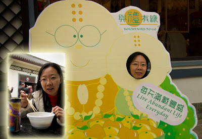 Our little cable car was skimming through the air over the blue-green mountains of Lantau Island to Ngong Ping Village, HK's newest attraction. This 25 minutes ride provide 360 degree panoramic breathtaking views of North Lantau & the South China Sea & got a glimpse of the HK International Airport 2. That's why it's called Ngong Ping 360 la.